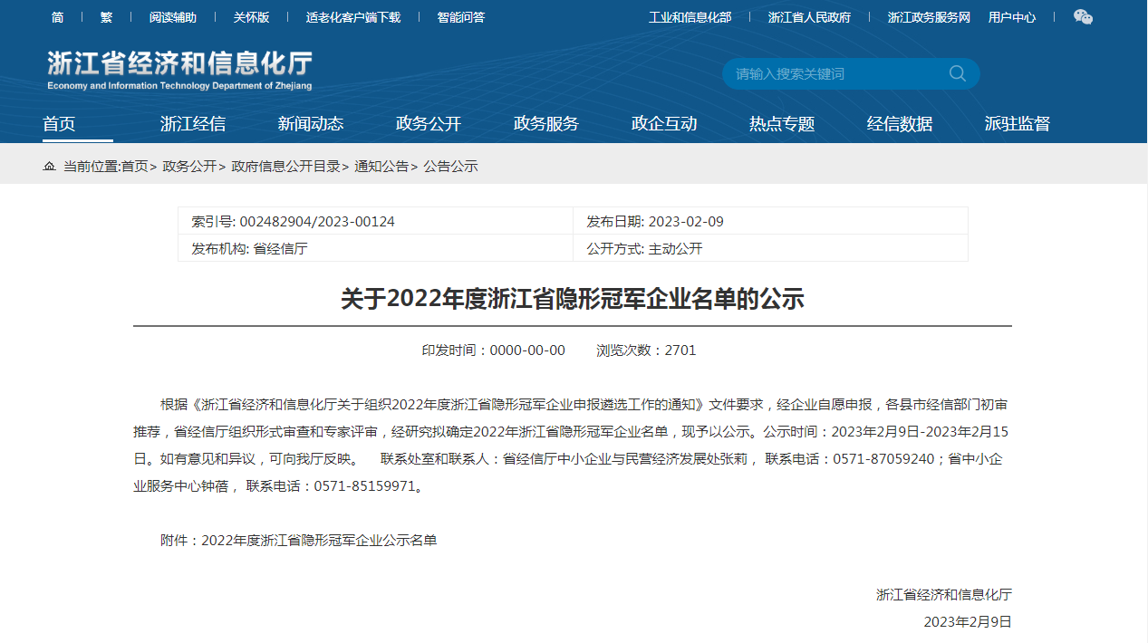 2月9日,浙江省經(jīng)濟(jì)和信息化廳發(fā)布的《關(guān)于2022年度浙江省隱形冠軍企業(yè)名單的公示》中,浙江臺(tái)華新材料股份有限公司上榜。