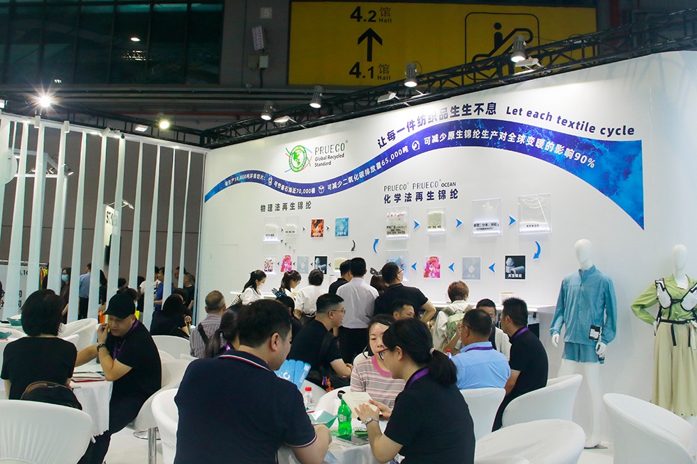 嘉華尼龍本次展臺(tái)以上古神獸-鳳凰的五彩羽毛為靈感,旨在通過絲縷重疊、通透玲瓏的展臺(tái),呈現(xiàn)如鳳羽般舒適、輕量、強(qiáng)韌、色彩飽滿的嘉華錦綸纖維。嘉華新一代高性能錦綸PRUTAC 色澤飽滿、輕盈雅致、柔軟舒適又堅(jiān)韌無比,帶來全新的面料體驗(yàn)。嘉華尼龍?jiān)偕\綸品牌PRUECO 傳遞環(huán)境友好理念,是踐行綠色低碳理念的最好體現(xiàn)。